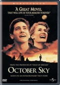 October Sky Joe JohnstonRated: PG Writer: Lewis Colick Date Added: Jan 2, 2010 Languages: English, French ENDlanguages-->Subtitles: English Sound: Dolby Digital 5.1 Picture Format: Anamorphic Widescreen Summary: Based on the memoir "Rocket Boys" by Homer H. Hickam Jr., "October Sky" emerged as one of the most delightful sleepers of 1999--a small miracle of good ol' fashioned movie-making in the cynical, often numbingly trendy Hollywood of the late 20th century. Hickam's true story begins in 1957 with Russia's historic launch of the "Sputnik" satellite, and while Homer (played with smart idealism by Jake Gyllenhaal) sees Sputnik as his cue to pursue a fascination with rocketry, his father (Chris Cooper) epitomizes the admirable yet sternly stubborn working-man's ethic of the West Virginia coal miner, casting fear and disdain on Homer's pursuit of science while urging his "errant" son to carry on the family business--a spirit-killing profession that Homer has no intention of joining.